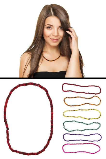 Synthetic stone chip stretch necklace. Comes in assorted colors. You receive 12 necklaces per unit.